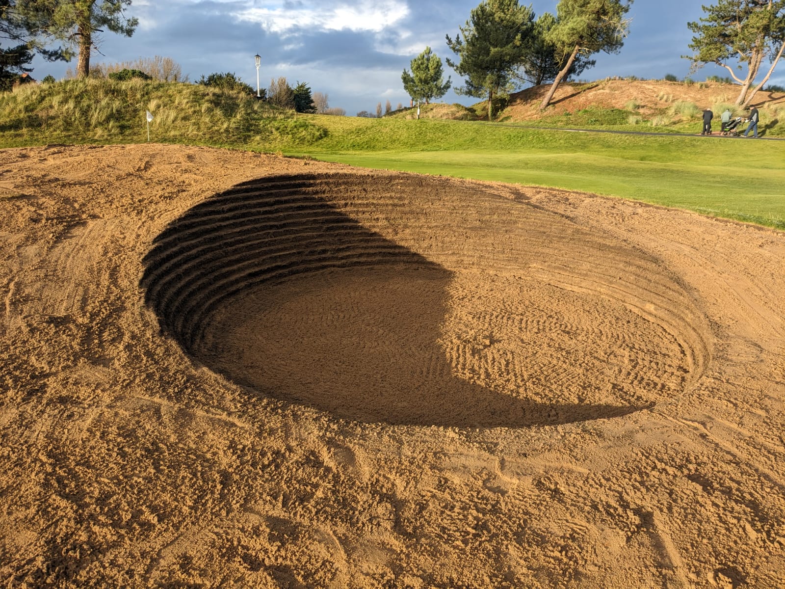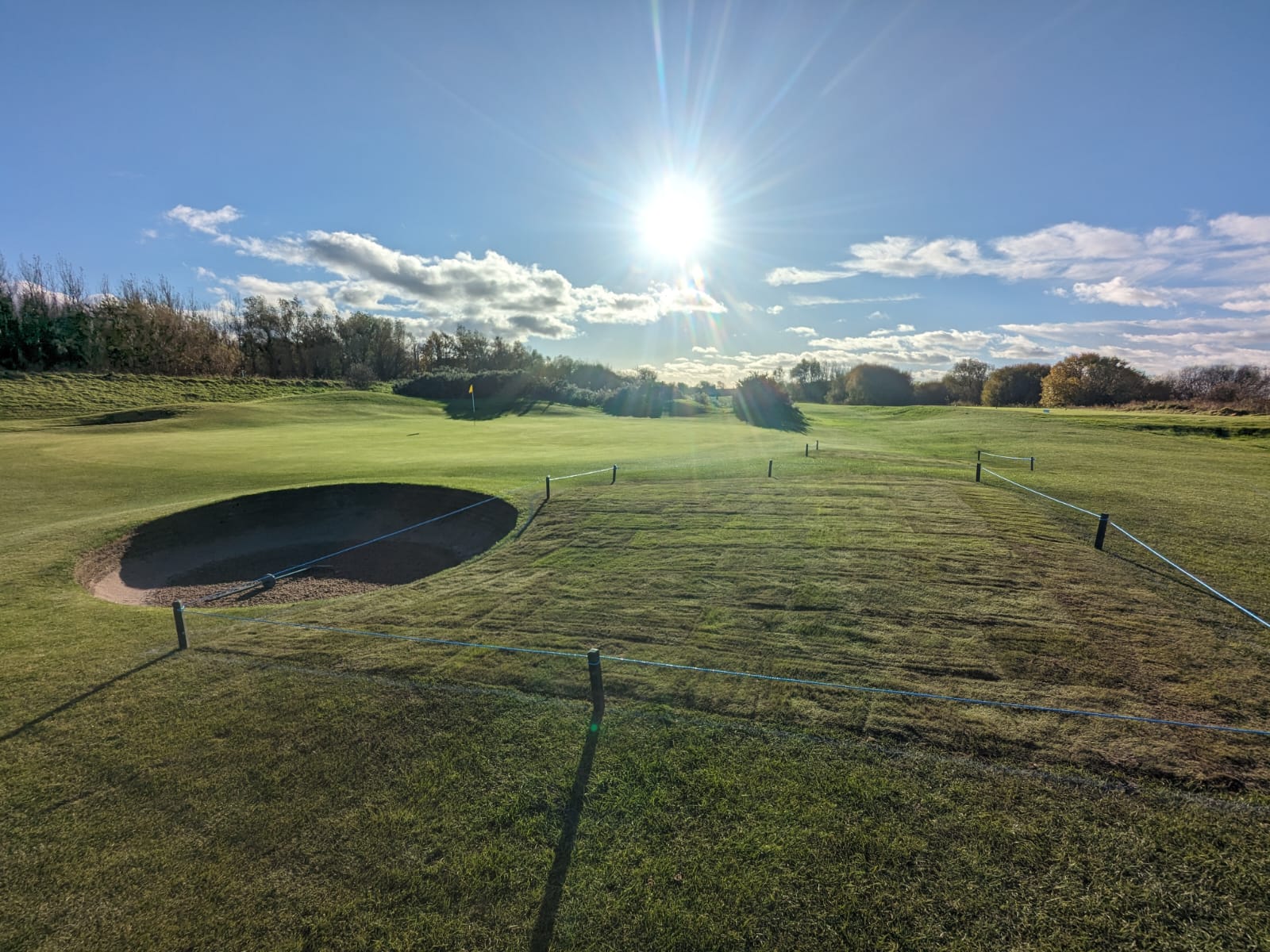 This was another job that we had been eager to put right for a while with the previous bunker falling into a state of disrepair. We got together with Ian Clark, Green Director and decided the best option for this hole would be to create a pot bunker, mirroring the bunkers to the right, by doing this it allowed us to improve surrounding areas by removing high, steep mounds therefore making it more mower friendly.