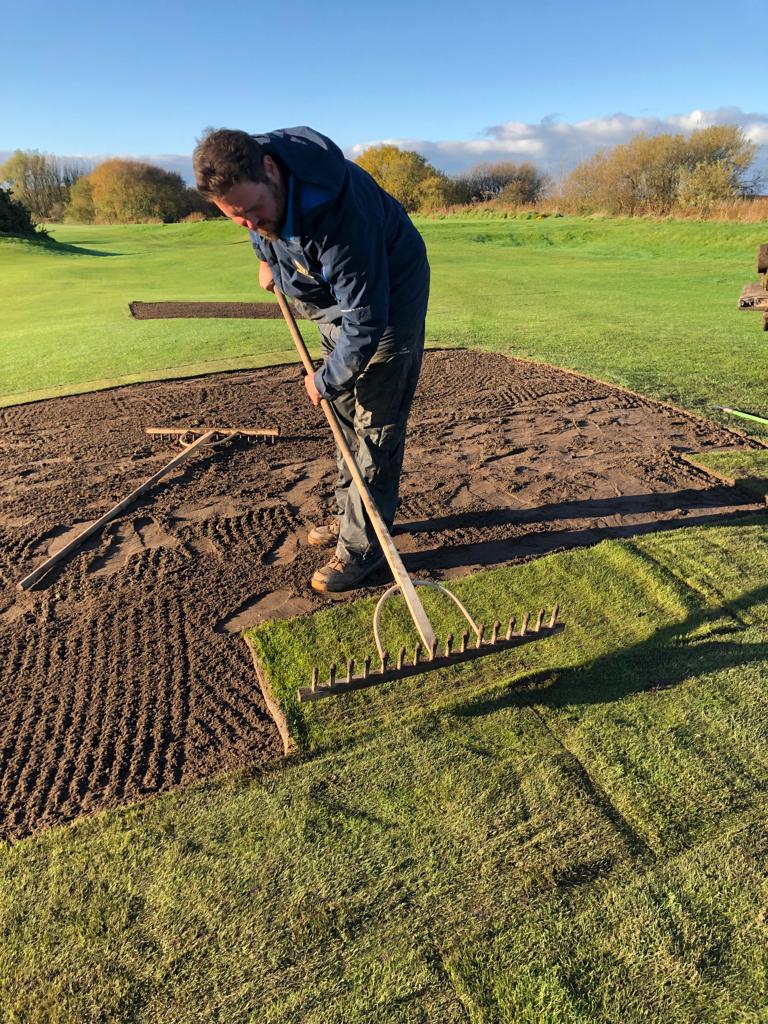 As Peter is on holiday, one of my tasks is to write this message to the members. I have been Deputy Course Manager at Hesketh now for 6 months and I am really enjoying my new position. This year has gone by very quickly and it doesn’t seem that long ago we were seeking to get as much water on the course as possible and now we are doing all we can to get water off the course. The projects that we are carrying out are going to improve the playability and appearance of each hole. At the moment the weather is holding up somewhat and this is allowing us to cut many areas, unfortunately many fairways are still too sodden to cut, and we will cut them only when we can guarantee no damage.